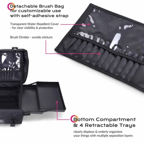 - One Bag for Prompt Taking Away - stores your cosmetics clearly & keeps your cosmetics at hand; perfect for studio and makeup artist; great for travel, wedding, parties, shows