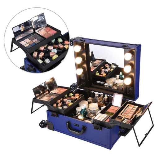 - Byootique® portable table-top makeup case with hollywood lighted mirror & 4pcs 360-degree universal wheels for smooth movement in every direction and 2 of them are lockable for stability, easy to turn a rolling case into a temporary makeup studio anywhere