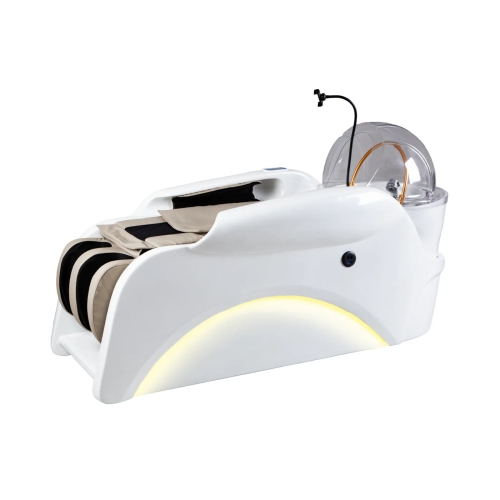 Enhance your salon experience with the Zen II Shampoo bed. This luxurious bed offers a full body massage while you enjoy a Japanese head spa treatment and a hair steamer session. Plus, stay connected with a built-in phone charger. Upgrade to the ultimate pampering experience.