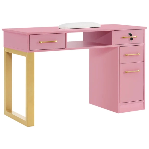 - Ergonomic Design: With an elegant wrist rest padding for providing comfortable support to client's arm, this beauty salon workstation could help relieve soreness caused by long-time manicure. The Arc-shaped handles offer the perfect grip for your drawers.