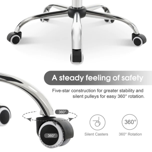 - Smooth Rolling & Sturdy Base: The chair uses sturdy metal five-star leg base, ensuring stability and safety when sitting on, and the maximum weight capacity up to 250LBS. The universal casters are quiet, and can move smoothly on the floor so that you can devote yourself to manicure work.