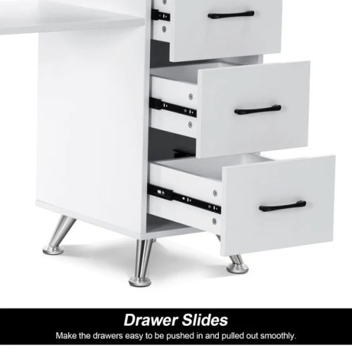 - Storage Capacity: This desk comes with three high-capacity drawers to help you classify your manicure tools in your workspace and allows you to put more of the tools you need. There is a half panel at the back of the drawer where you can put the manicure light in the middle drawer. And You can also put some frequently used tools on the spacious top board.