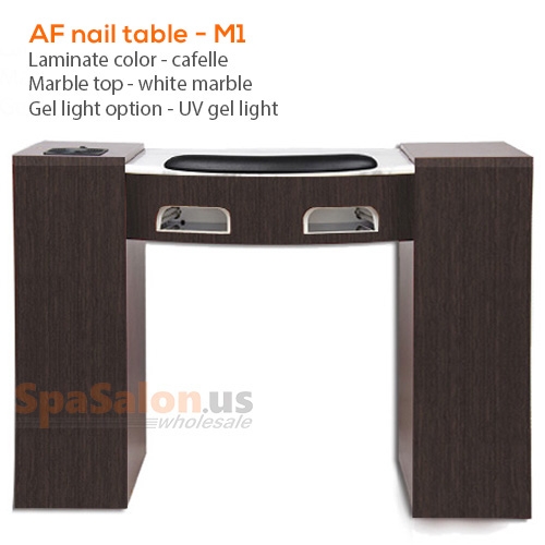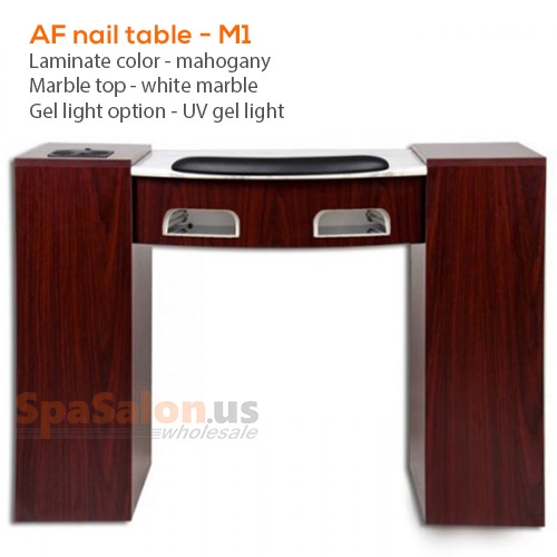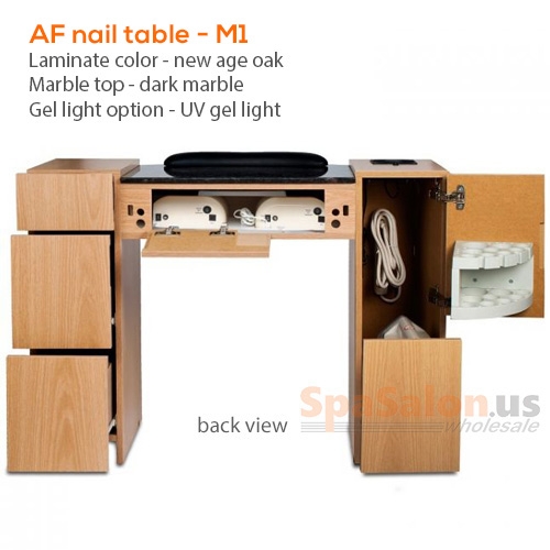 - Two 36W UV gel light with 3 minute timer, light switch for UV light, door opens 170 degrees, marble top 23 3/16" x 17"