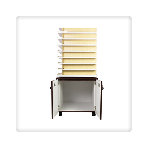 - Rotating Tower and lockable cabinet at the bottom.