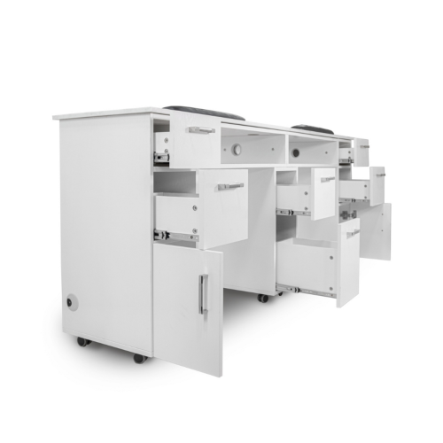 Introducing MAYAKOBA's newest Manicure Table Collection - DREXEL Double Manicure Table, a professional table with wood construction and acetone resistant finish. The front soft-padded decorative panels create a sense of comfort and elegance. It adds an upscale feeling to your manicure space with the option of four different colors to choose from, lets you find the perfect tone to suit your unique salon space.