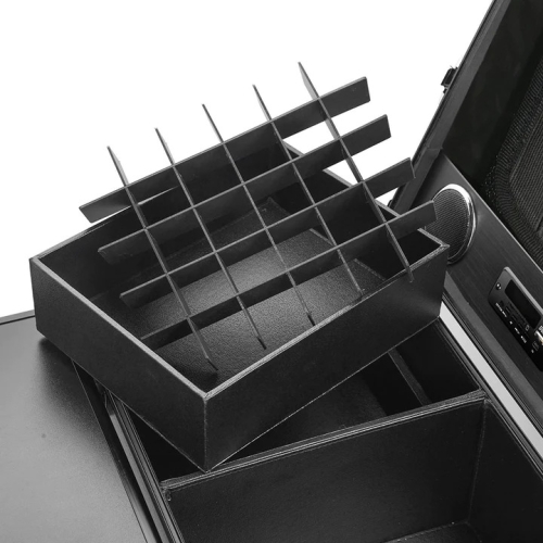 - Lockable latches on the cover & password-lock keep cosmetics safe, latches on the side lock the table