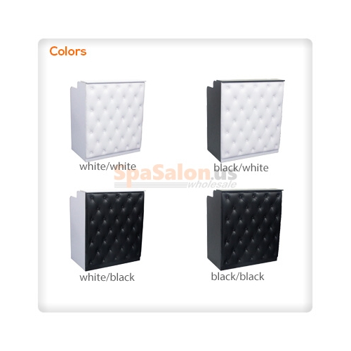 The DC reception desk has a classic French style tufted front panel. It is one of our most popular reception desks and is available in 2 color combinations.