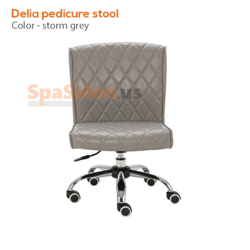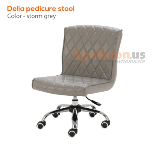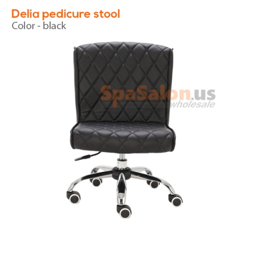 The Delia Pedicure Stool is designed for style, but lacks nothing in the comfort department. The diamond tufted stitching is overlaid on high density foam for firm back support through long pedicure sessions. This stool is available in 5 colors to accentuate any salon décor, with a wide seat, and a heavy duty pneumatic pump. This stool pairs perfectly with the matching DELIA Customer Chair.