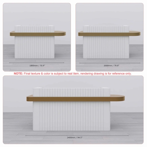 A beauty salon, and spa reception desk manufacturer, provides custom reception desks according to your needs. The UPGRADED Macron Gold Pencil Reception Desk works as an important section for greeting customers, even the key factors for your business.