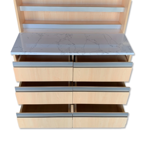 - Holds up to 500 Polish Bottles or 350 Powder Bottles ( less than 2oz ). Will store more inside the 8 sliding drawers!