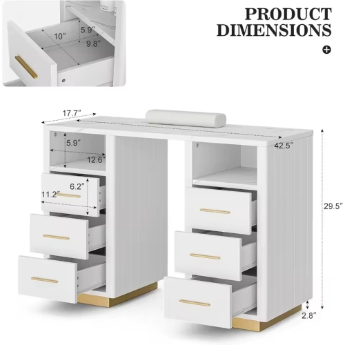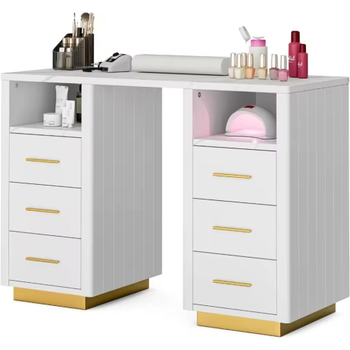- Large Storage Space - The desk has 6 drawers and 2 open storage compartments for nail tools and nail polish. Different types of storage space can meet different storage requirements