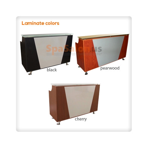 The RF1015 Reception Desk with Silver accent panel and three color options is a durable and space-efficient piece furniture. The three different laminate finishes available plus the attractive silver accent panel allow this Desk to integrate seamlessly with any room’s décor. The laminate colors match all of our other Salon Equipment also, so you can create a matching set for your entire Salon.