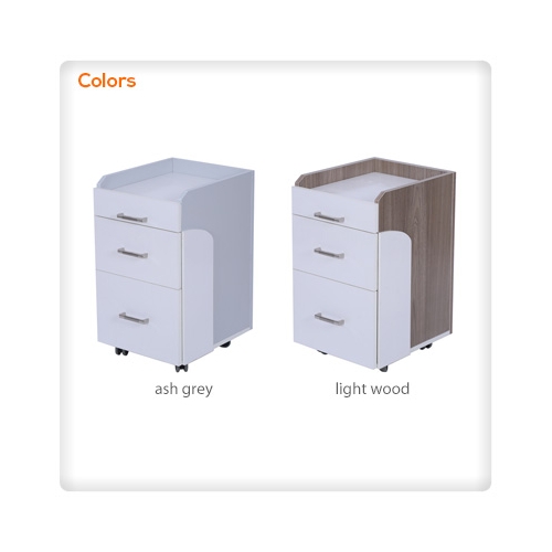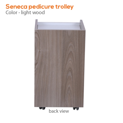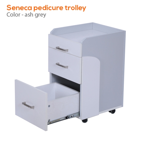 The Seneca pedi cart is an upscale piece with chrome handles, hardwood veneer, and two accent colors: ash grey and ash wood. This pedi trolley can be easily moved about the nail salon with four highly functional casters. The simple yet beautiful design is the staple design style of the Seneca salon furniture line.