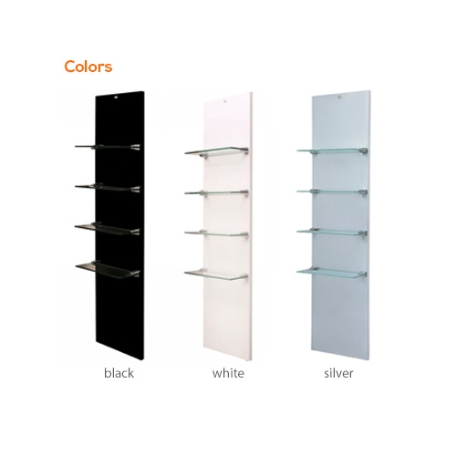 The Vina wall mounted Display shelf is made to function to any wall space and also made to fit next to styling units with a simple but elegant Design with frosted glass shelving to bring the viewers attention straight to the products added to each shelve.