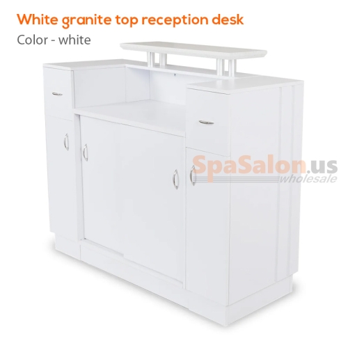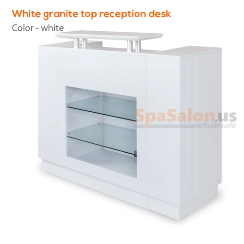 The sleek, modern design of the reception desk makes it the perfect check in station for the busy spa or salon. With a rich white finish and a white minimalist granite top, it’s a timeless look that will give your salon a sophisticated look and feel.