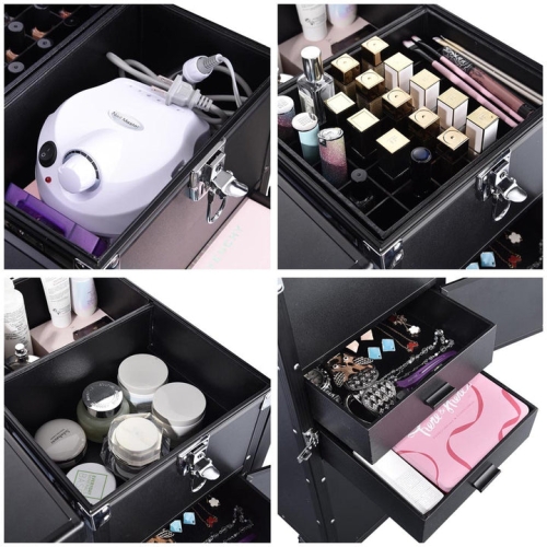 - [2 Working Platforms & Large Capacity]: 2 foldable tables for easily turning into work platforms, which allows to serve 2 customers at the same time and greatly improves efficiency; Upper compartment with dividers for small tools and a bottom compartment with 4 detachable drawers for large items, perfect to organize your necessities in one case