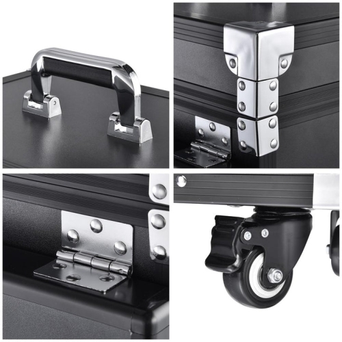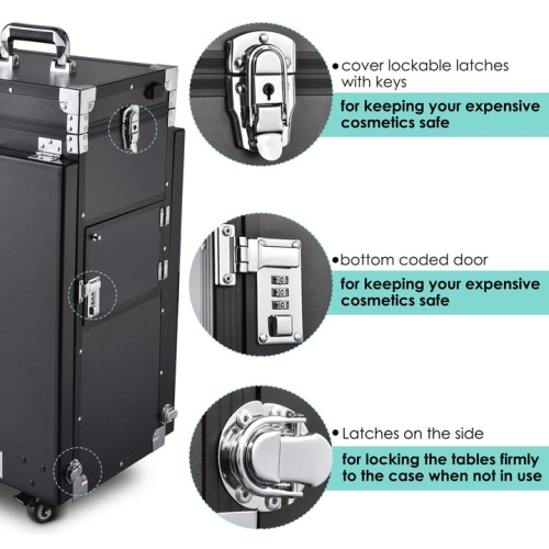- [Lockable Design for Security]: Cover lockable latches with keys & bottom coded door for keeping your expensive cosmetics safe and preventing being lost; Latches on the side for locking the tables firmly to the case when not in use