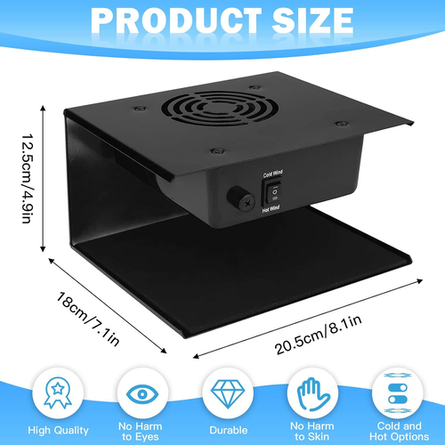 Nail dryer fan is small, overall size:8.1*7.1*4.9inches