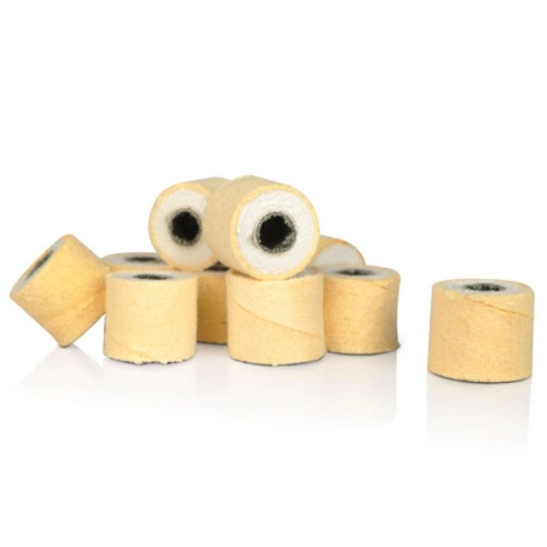 Use chamois bands on a brass bit to smooth out rough, dull nails and eliminate buffing by hand for faster, easier manicure services.