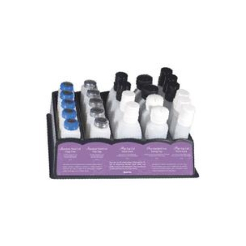 Ikonna standard liquid pump set. Plastic display tray holds 23 pumps. Set includes: 6 pcs ea: PLP-4, 5 pcs ea: SLP-6CF, SLP-8, 4 pcs ea: PLP-8, PLP-R. All bottles are, 1 touch polyurethane liquid pumps.