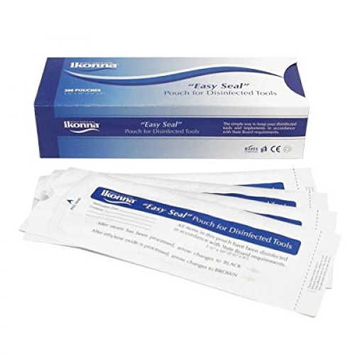 Transparent "Easy Seal" Sterilization Pouch for Autoclave Sterlizers are the simple way to keep your disinfected tools and implements in accordance with State Board requirements. contain 200 pouches per box.