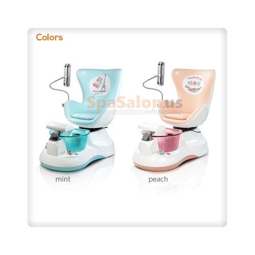 The latest Kid's Spa is designed for young kids with fun colorful and kid appealing. The combination between popular spa features and new technologies makes the Kid’s Spa become the best of your choice. The new style chair without the arms combines with the free lines and curves designed bring a new fashionable and comfortable look for kid chair. The chair can turn 90 degree two sides to make an easy for kid to get in and out of pedispa.