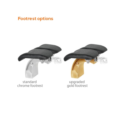 Revolutionary 360-degree versatile footrest. Each pad can be turned, lifted and used in many different positions, and comes in our unique gold model and standard chrome.