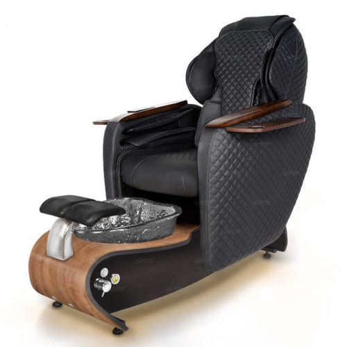 The base is unlike any other. The appealing shape, combined with many choices of sparkling glass bowl colours, links together with the unique design of a pedicure chair that has a relaxing upper body massage.
