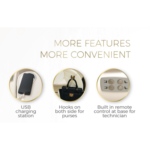 - Acetone-proof vertical swing armrest with foldable firm manicure/drink trays