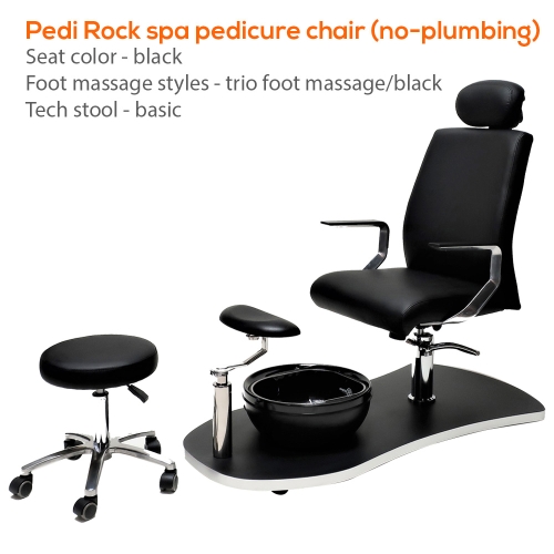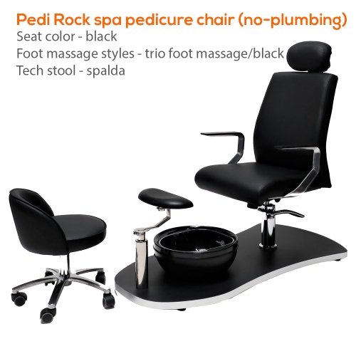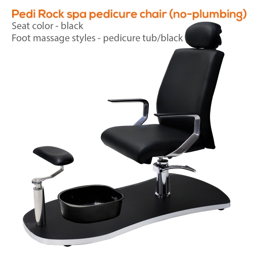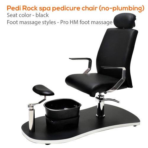 Pedi Rock Pedicure Chair is a compact pedicure station with smart options to enhance pedicure services. Low set platform with rotating chair for easy client access. Chair equipped with hydraulic pump to accommodate tall clients. Your client can recline cushion and adjust removable head rest for a most comfort position. The adjustable swiveling footrest is a great option for working on feet. The chair is light weight, requires minimum assembly, comes with 1 year manufacturer warranty.