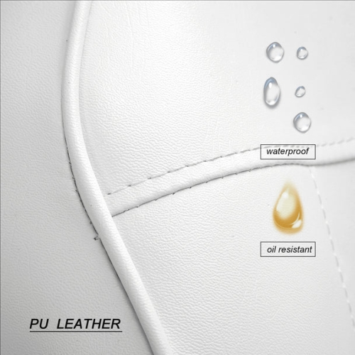 - 100% premium polyvinyl chloride (PVC) synthetic leather, waterproof and oil resistant.