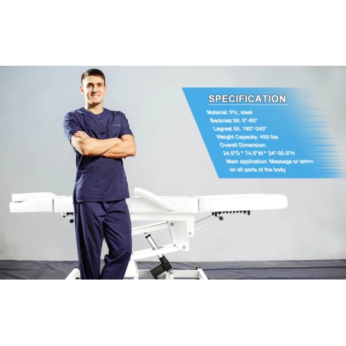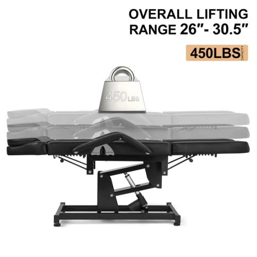 - Sturdy and Durable: This tattoo chair has a sturdy and heavy-duty steel frame that can hold up to 450lbs. Powerful electric hydraulic pumps provide strong support.Non-slip feet ensure its stability and friction, preventing the salon bed from rocking or slipping during massage.