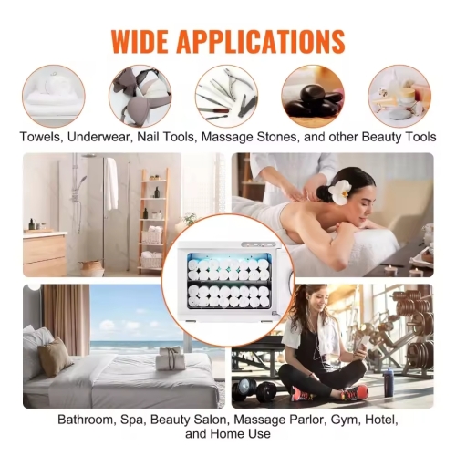 - Our facial towel warmer is not just for towels! It's perfect for heating facial towels, bath towels, undergarments, nail tools, massage stones, and various beauty tools. It's an ideal addition to homes, spas, bathrooms, beauty salons, hotels, restaurants, and kitchens.