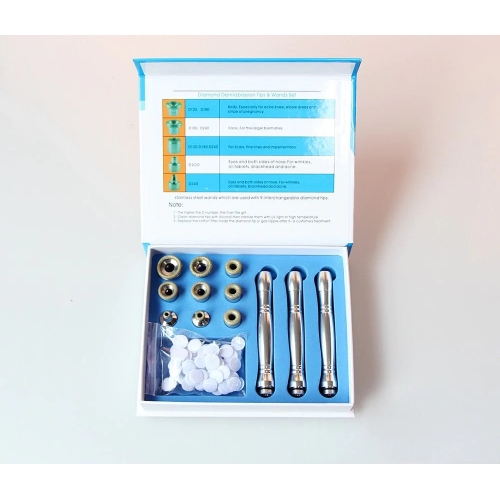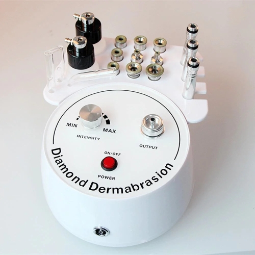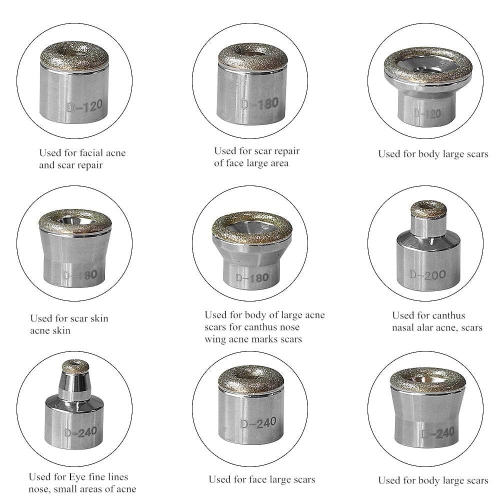 - MICRODERMABRASION FACIAL PEELING: Our diamond microdermabrasion machine utilize latest design different from other machines, It has 3 functions: 1.Diamond Microdermabrasion for Facial Scrub 2.Vacuum function for blackhead removal 3. Spray function for skin moisturizing. (9 SHAPED DIAMOND HEAD, 3 GLASS VENTOUSE FOR VACUUM SUCTION and 2 SPECIAL BOTTLES FOR SPRAY.)