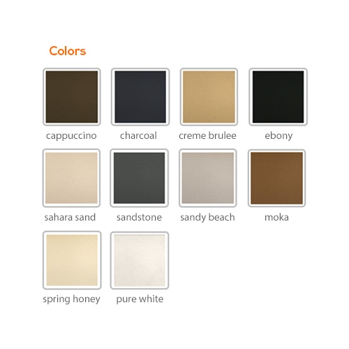 - Color : Cappuccino, Charcoal, Creme Brulee, Ebony, Moka, Pure White, Sahara Sand, Sandstone, Sandy Beach, Spring Honey