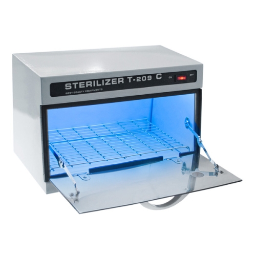 (Although the cabinet does provide a sterile environment it is not a substitute for liquid sterilization. Tools and implements should be properly disinfected in a sterilizer jar or tray prior to storage.)