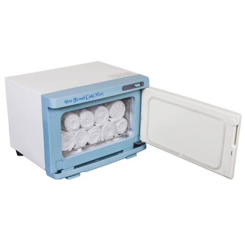 The Elite Mini Hot Towel Cabi keeps 12 regular manicure size towels or 12 regular size facial towels at a steamy and hygienic 160 degrees Fahrenheit. Its compact size will fit on any massage table shelf and is ideal for small salons or certain healthcare offices where work space is limited.