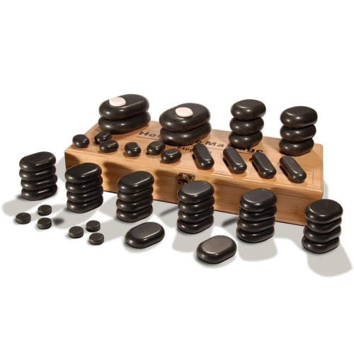 54 pcs complete Body & Facial Massage Stone Set Consists of : 4 Xtra Large Flat Oval Basalt Stones, 6 Large, 26 Medium, 6 Small, 4 Small Circular Facial Stone, 4 Mini Pressure Point, 4 Small Oval White Marble Stone Total 54 pcs packed in Bamboo Organizer Box