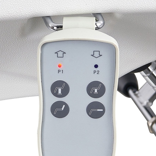 - Duo electro-hydraulic motor for height and reclining backrest adjustment. Arm-rest and extendable leg-rests are manually adjusted by hand.