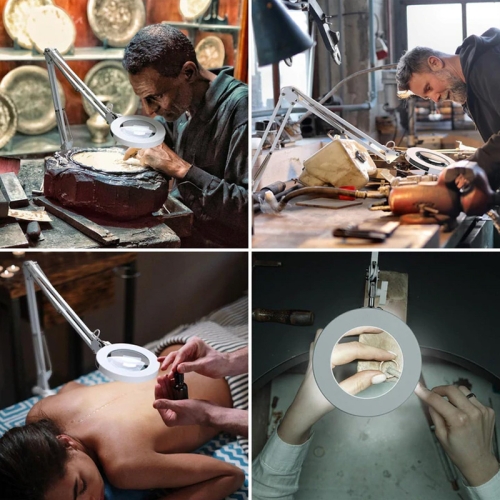 Yescom Clamp-On Illuminated Lighted 5x Magnifier Lamp is ideal for Reading, Salon Hobbyists, Beauticians, Circuit Board Inspection or just as a Vision Aid. It is convenient to use as its lens head can rotate left and right with 360° and flip up and down 270°. With the desk clip, you can easy assemble it in any position.