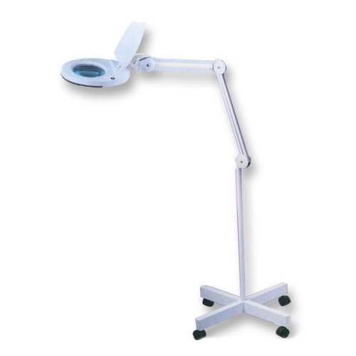 A rolling magnifier and lamp with a 5x magnifying lens.