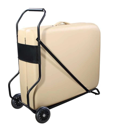 The Universal Massage Table Cart is a simple but effective solution for mobile therapists. It has elastic straps around the edges to contain a variety of tables. The cart fits tables up to 33" wide. The Universal Massage Table Cart's large, heavy-duty wheels glide easily over all types of terrain. This is a must for every traveling bodyworker!