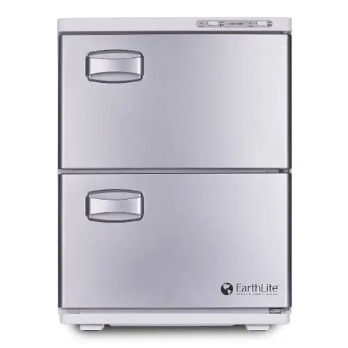 Our signature silver door is surrounded with white exterior in three convenient sizes. These dependable UL listed units heat and sanitize up to 128 facial towels; a sleek design features a stainless-steel interior, dual compartments, and a discrete drip pan. The Hot Towel Cabinets offer a compact footprint that heats and sanitizes your cloth or disposable towels for continuous use throughout the day.
