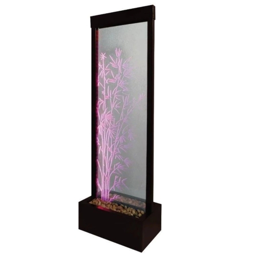 The Black Onyx Gardenfall Bamboo Etched with clear glass feature is easy to enjoy the soothing sights and sounds of water sheeting beautifully down clear glass past polished river rocks year-round. Designed for today's decors, its clean, contemporary design enriches any space while its humidifying and air-cleansing properties promote a healthier living environment. Quiet operation and durable materials make this water fountain suitable for indoor use only. "