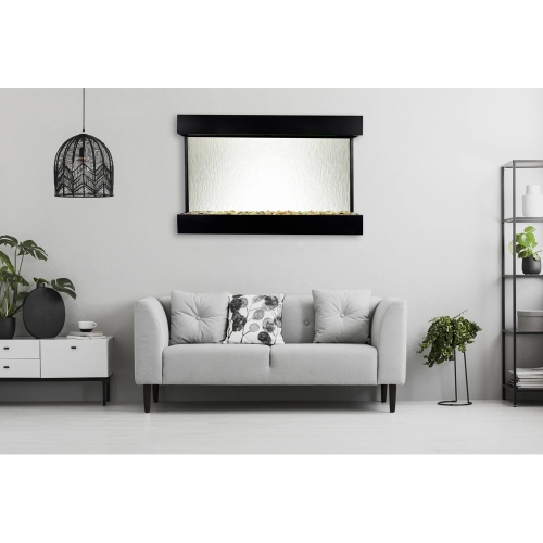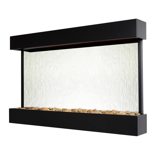 The Echo Falls Large Vertical Silver Mirror with Black trim is the newest in our series from our chromotherapy line. Features black onyx powered coated side panels, header, and reservoir. Color is widely known to affect our moods, emotions and possibly our health. Our reflective mirror wall fountains have the same color changing LED lighting system has our Garden Fall floor fountains. Sit back and relax as a wave after wave of color transformed your room into a light show. Pure relaxation. With a handheld remote you can select from several solid color options, or choose one of several pre-programmed color changing light displays.