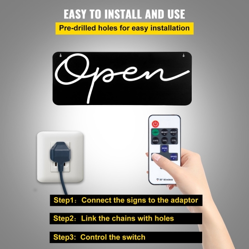 - Easy to Install and Use: Our open sign has 2 pre-drilled holes and hanging chains. Connect the signs to the adaptor first, then link the chains with holes. You can move them into the ideal position, hang them or fix them on the wall, or place them on a flat surface. (screws and 12V adapter are included).