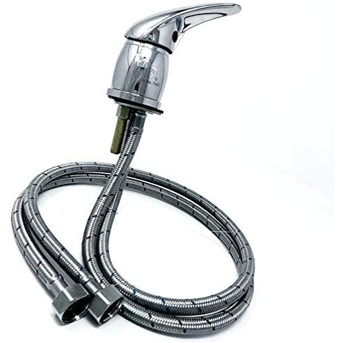 Professional Chrome Finish Faucet Single ON/OFF Lever Hot and Cold Water Control Fit Most Shampoo Bowls and Shampoo Backwash Units! Please View Product Description for Measurements Durable Metal Hot and Cold Pipes. Included in the kit is a Shampoo Sprayer with Stopper Durable High-Density Rubber Hose Brass Fitting Hose with continuous spray head 1/2" female swivel nut flare connection. The adapter is included in the kit