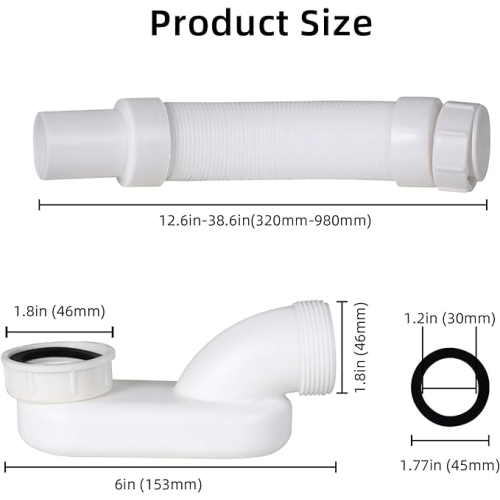 - Adjustable Length: This trap's hose is designed to be highly adjustable, with a stretch length ranging from 12.6 inches to 38.6 inches. It can be bent and stretched to fit perfectly in the confined space of your freestanding tub