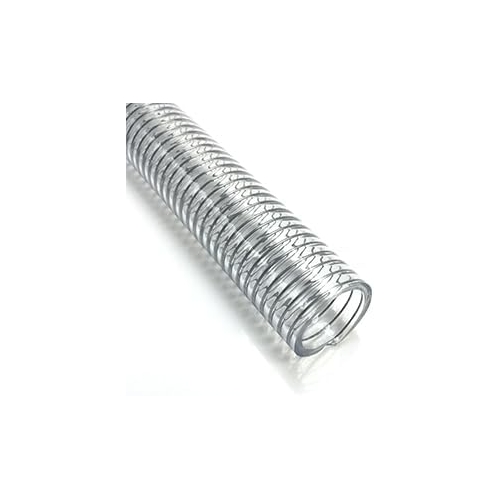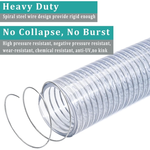 Spiral steel wire reinforced incorporated within the wall of flexible pvc tubing, will definitely not collapse under transfer pump vacuum suction. Clear transparent wall make you see internal flowing.