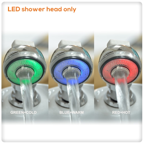 - Brilliant LED lights change color to indicate water temperature: GREEN when cold, BLUE when warm, and RED when hot